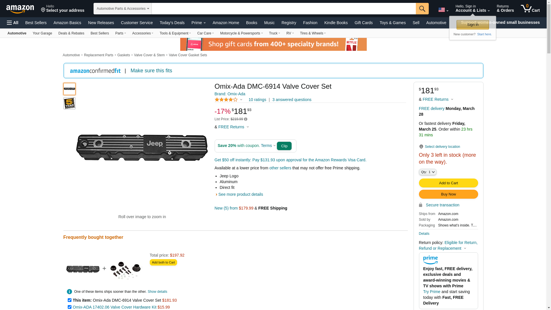![]() automotivestuff.com | OMIXADA-DMC-6914 | 1 | -2 | 1 | 1 @ $202.64 |