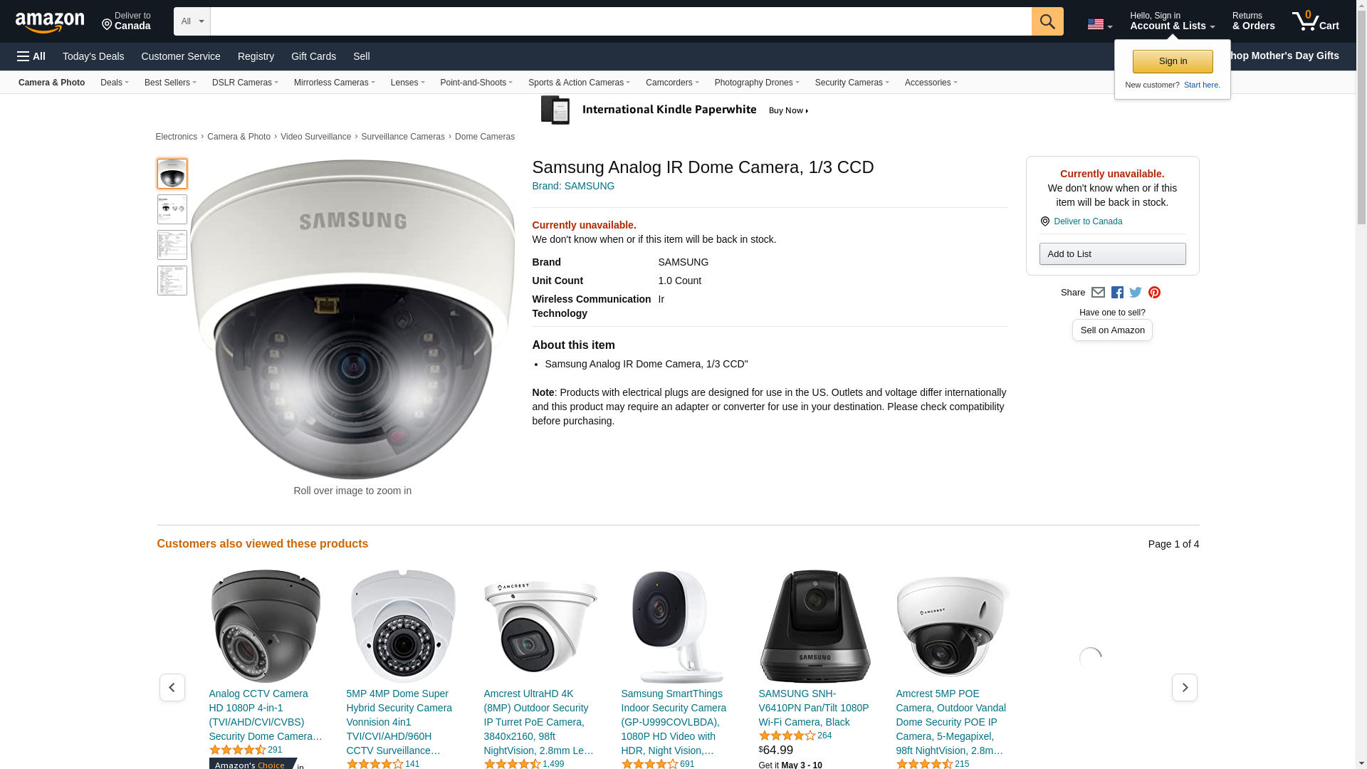 Samsung Analog IR Dome Camera, 1/3 CCD