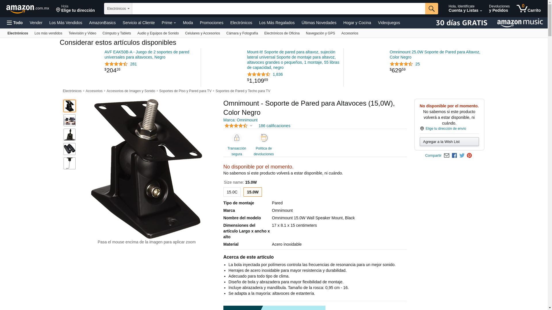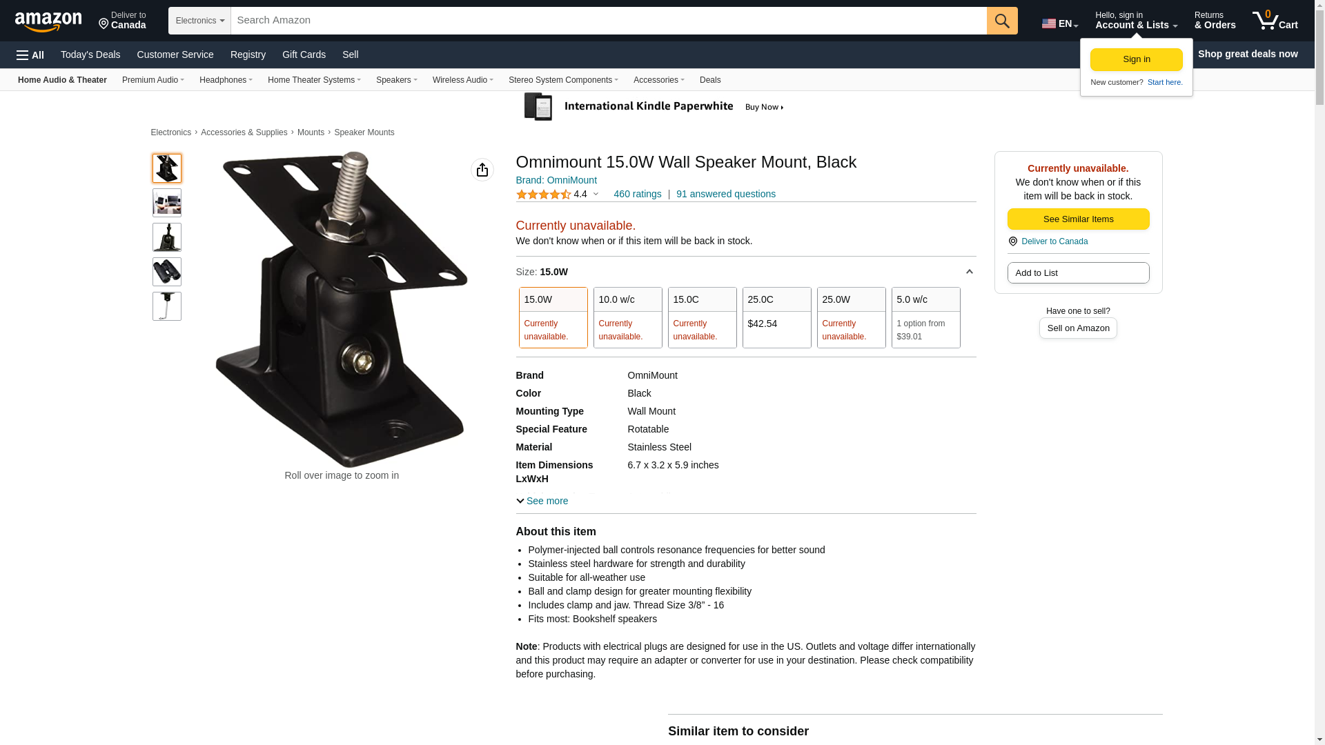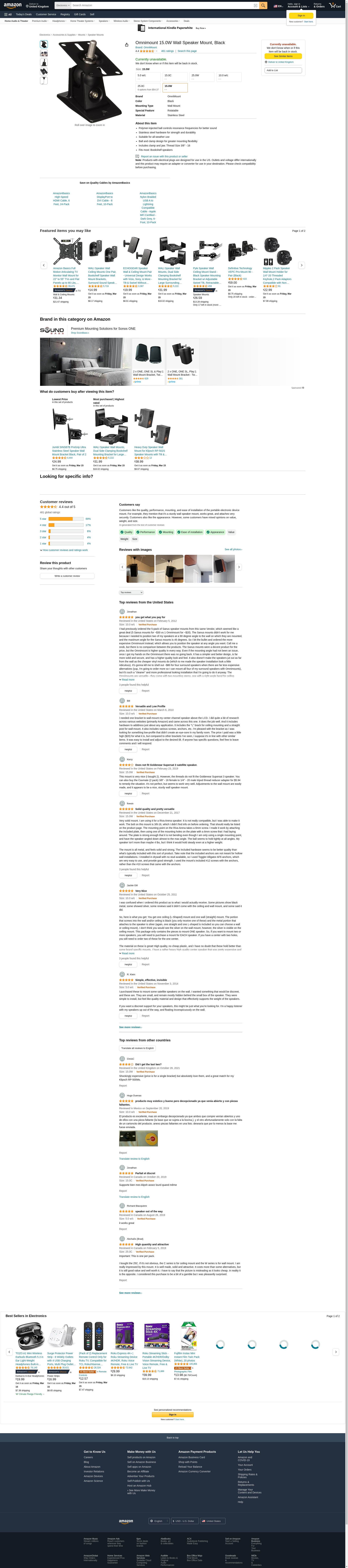 OmniMount Stainless Steel Series Wall Speaker Mount 15.0W