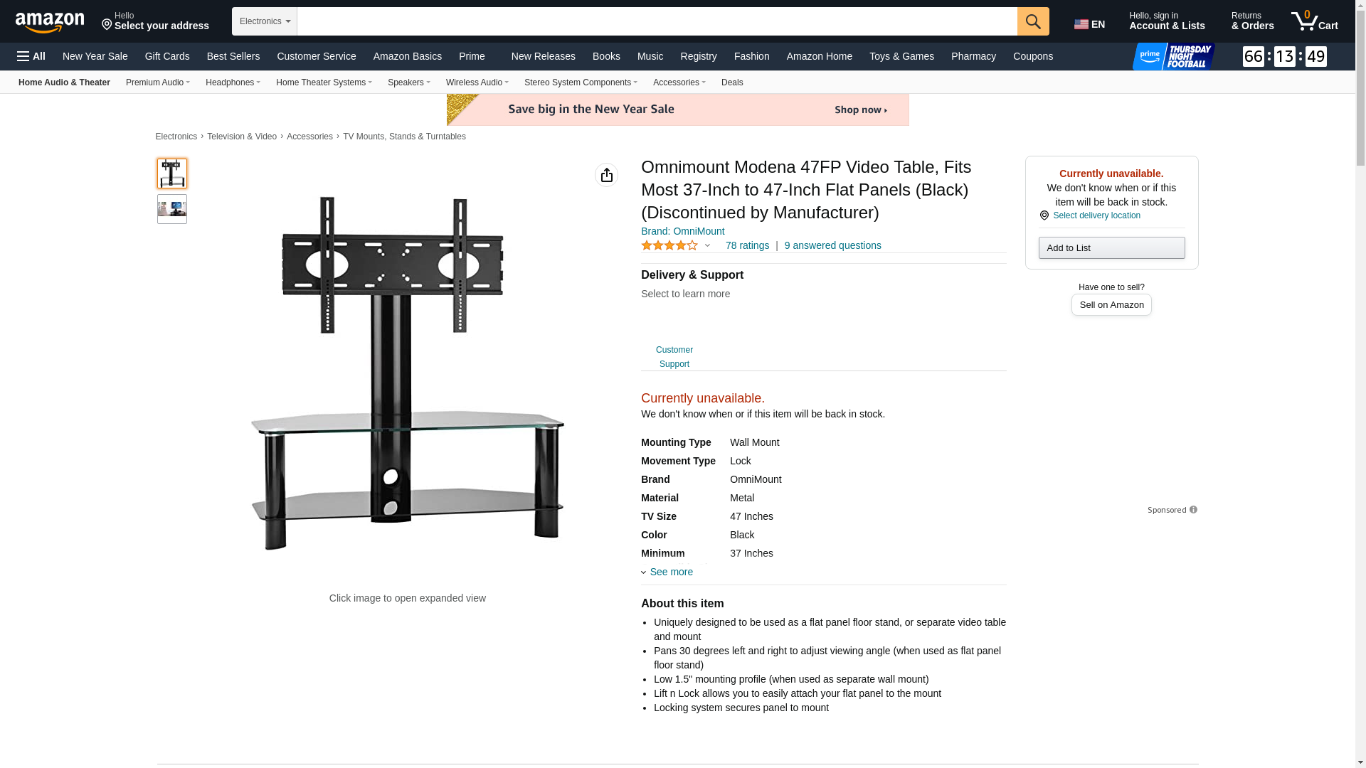 Omnimount Modena 47FP Video Table, Fits Most 37-Inch to 47-Inch Flat Panels (Black) (Discontinued by Manufacturer)