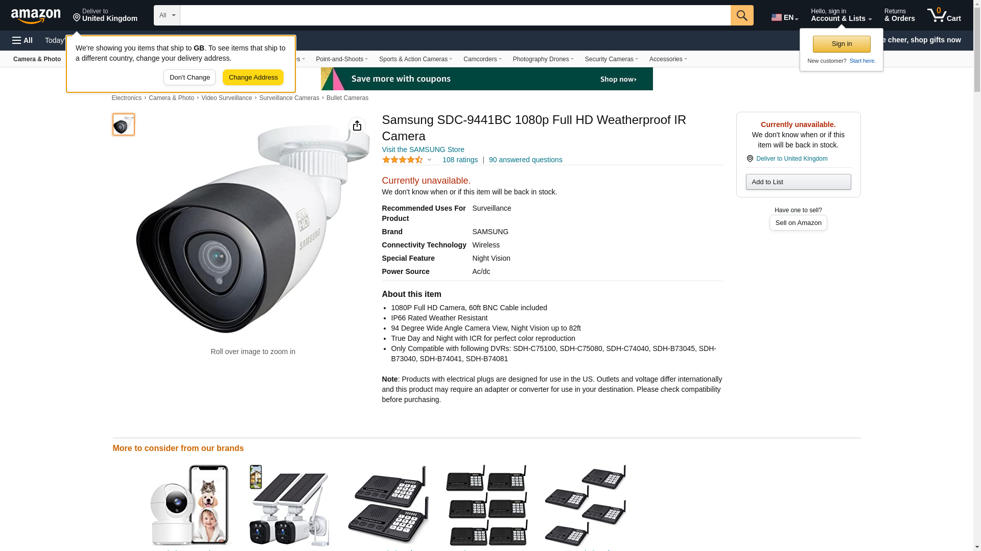 SDC-9441BC is Samsung's HD surveillance Bullet camera. It is included in several of Samsung all-in-one home surveillance systems. Samsung brings you a quality product that is durable, dependable, and easy to set-up and use. The SDC-9441BC is an outdoor security bullet camera. It has a weatherproof rating of IP66. It also comes equipped with LED infrared lamps to give it a max range of 82ft during night time condition