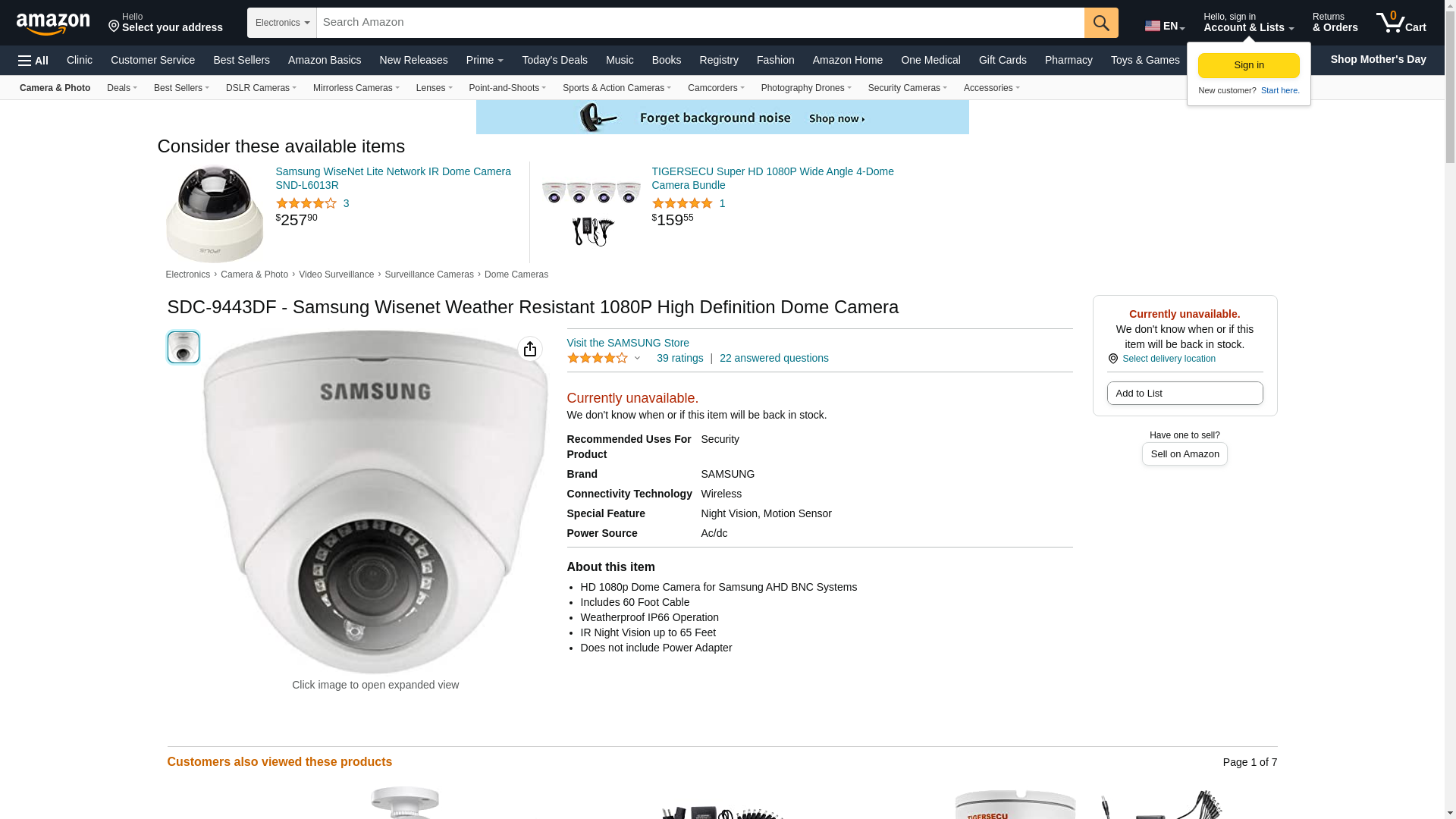 This Weatherproof Night Vision Dome is an HD 1080p Camera for use with Samsung AHD BNC Systems and other 1080p AHD Format Systems. The camera has built in noise reduction and digital wide dynamic range. 1080p HD resolution camera Includes 60 Foot cable 3.6mm Wide Angle Lens IR cut filter for perfect color reproduction IP66 weather resistant 105 Degrees Wide Angle View SSDR feature increases brightness in dark areas Night vision up to 82ft Supported Models: SDH-B74041, SDH-B74081, SDH-C75100, SDH-C75080, SDH-C74040, SDH-C73040, SDH-C75083, SDH-C74043, SDH-B73043, SDH-C74083HFN, SDH-C75083HFN