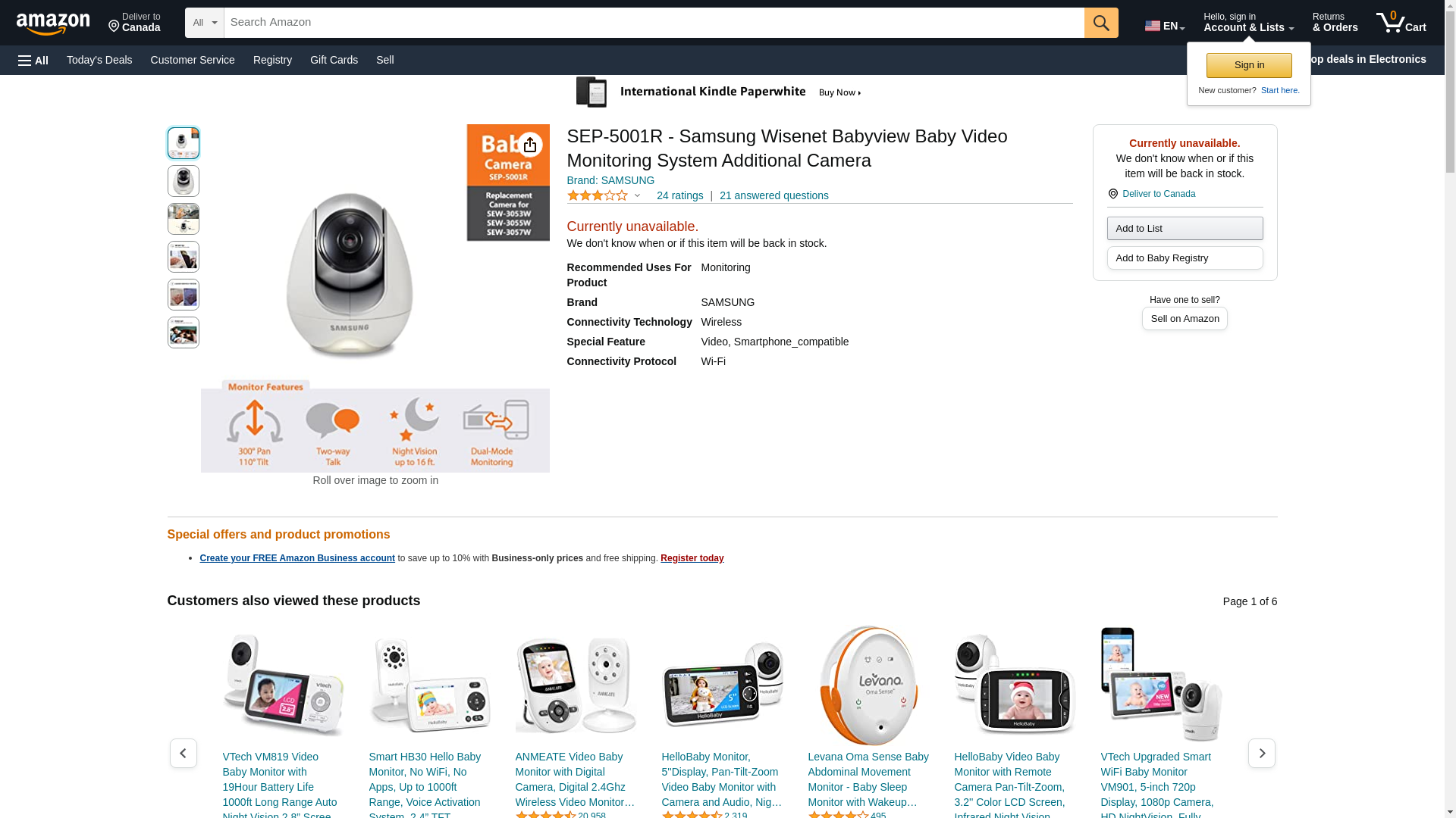 SEP-5001R - Samsung Wisenet Babyview Baby Video Monitoring System Additional Camera