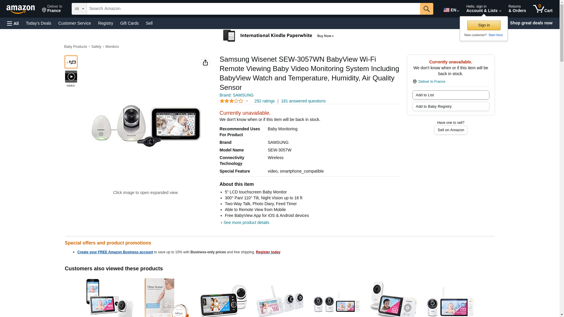 Samsung Wisenet SEW-3057WN BabyView Wi-Fi Remote Viewing Baby Video Monitoring System Including BabyView Watch and Temperature, Humidity, Air Quality Sensor