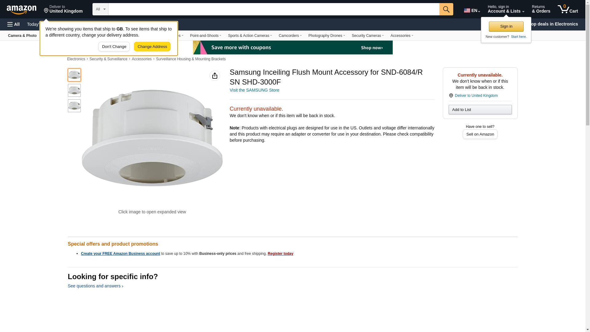 Samsung SHD-3000F Indoor In-Ceiling Housing for Dome Cameras