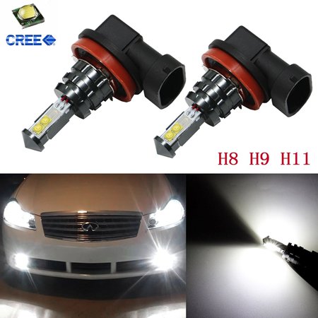 <ul> <li>Two piece super bright H8 H9 H11 LED bulbs</li> <li>Color: 6000K bright white color</li> <li>Replace stock bulbs H8 H9 H11 for fog lights, Daytime running lights</li> <li>Equipped with 4 pieces Cree King Kong series LED chips</li> <li>Wattage: 20W, 1800LM each bulb</li> </ul>