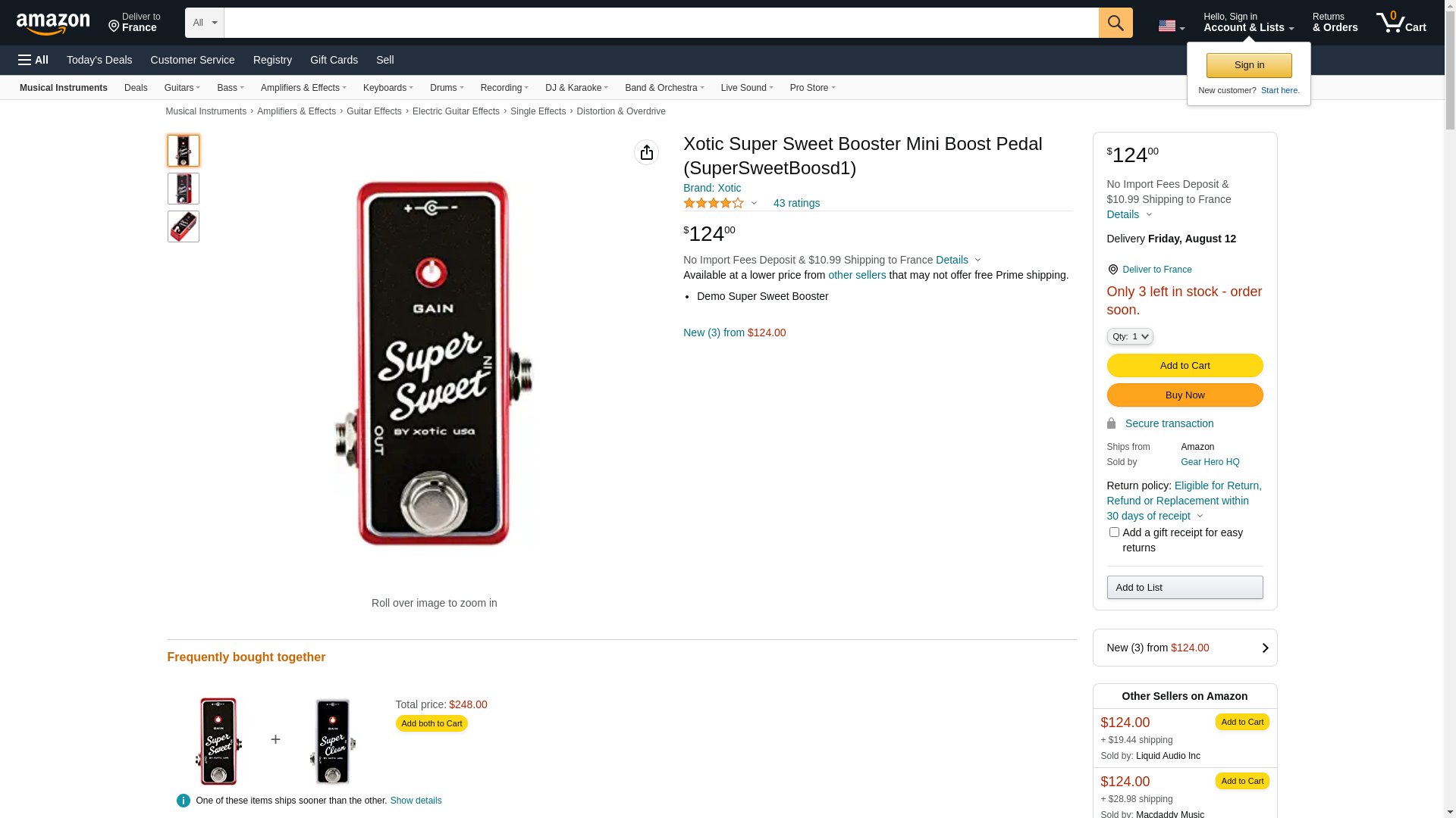 Give Your Tone a Big Boost with This Compact Pedal With premium components and up to 20dB of boost available, the Xotic Super Sweet Booster pedal is a great way to punch up your tone. The real magic lies in the Super Sweet Booster’s external DIP switch, which allows you to fine-tune which frequencies are emphasized with the boost. Whether you want a broad-range boost or want to focus your mids for more punch and impact, the Super Sweet Booster has you covered. Ask any guitarist at GearNuts, the Xotic Super Sweet Booster pedal is a versatile tone-boosting tool in a compact format.Xotic Super Sweet Booster Pedal Features: Boost pedal with up to 20dB of boost External DIP switch selects which frequencies are emphasized by the boost Powered by 9-volt adapter (sold separately)