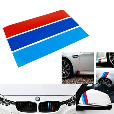 <ul> <li>1 piece of BMW M-colored stripe vinyl decals</li> <li>Specially design for both interior and exterior decoration purpose, made with high quality vinyl paper with glossy coating</li> <li>Long duration, will not fade, chip or crack</li> <li>Easy installation and removal, remove with no residual and damage</li> <li>Size: 10" x 6" (10" x 2" for each color)</li> </ul>