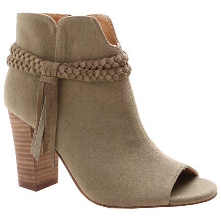 Show off your style, and your pedi, with the Belina peep-toe ankle boot. Open toe Woven cord wrapped around ankle with tassel detail Stacked heel Inside zipper.