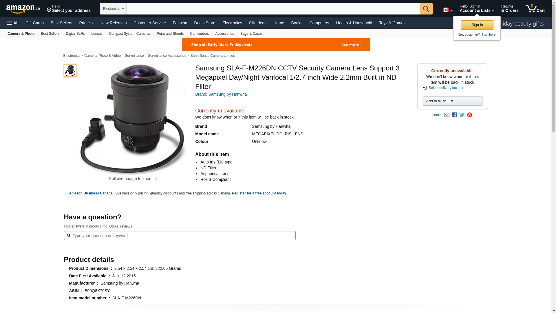 Samsung SLA-F-M226DN CCTV Security Camera Lens Support 3 Megapixel Day/Night Varifocal 1/2.7-inch Wide 2.2mm Built-in ND Filter