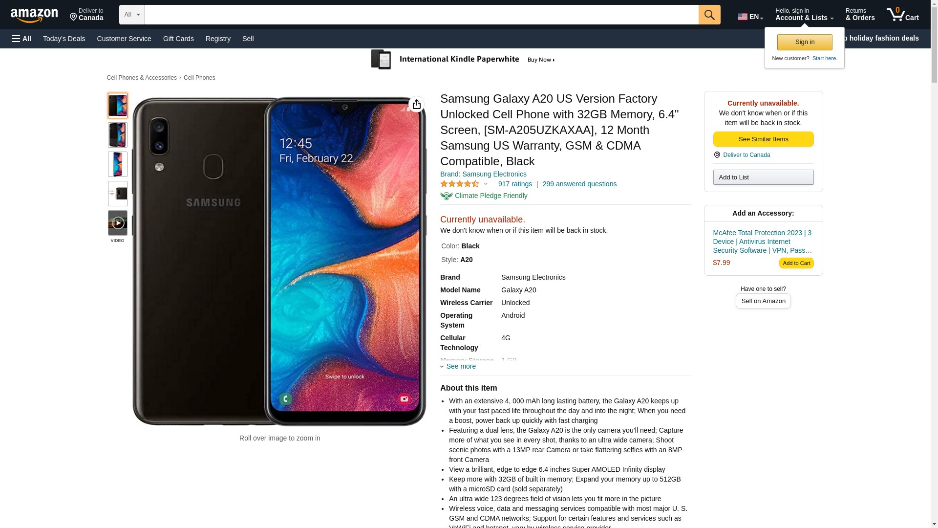 Samsung Galaxy A20 US Version Factory Unlocked 32GB Memory, 6.4" GSM & CDMA Compatible, Black (Renewed)