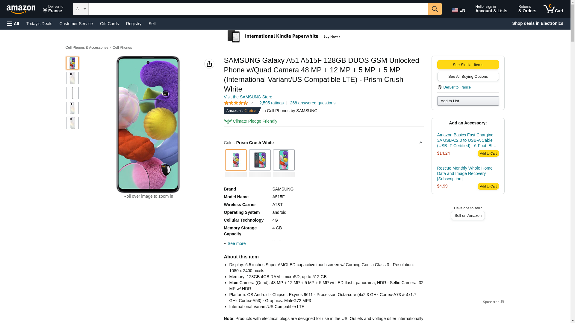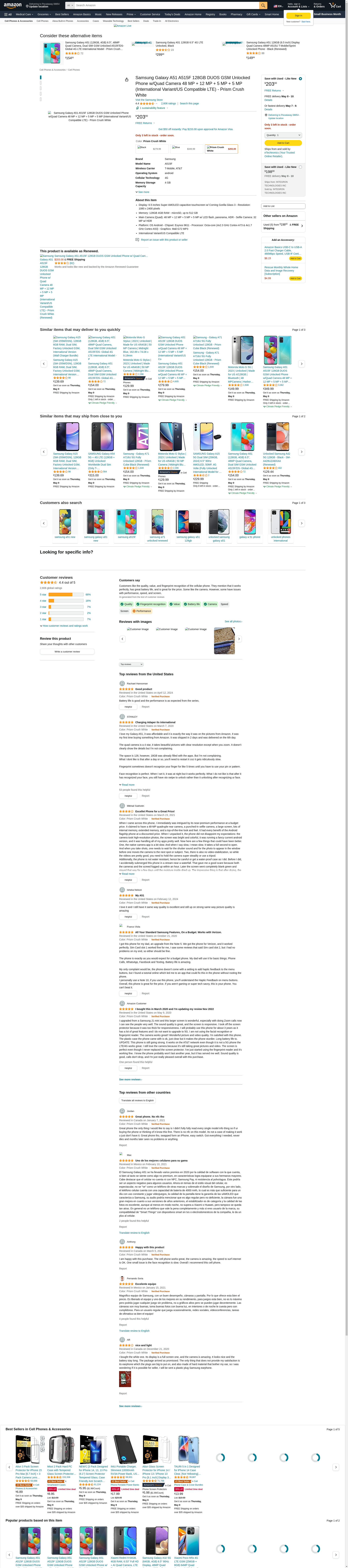 Samsung Galaxy A51 A515F 128GB DUOS GSM Unlocked Phone w/Quad Camera 48 MP + 12 MP + 5 MP + 5 MP (International Variant/US Compatible LTE) - Prism Crush White