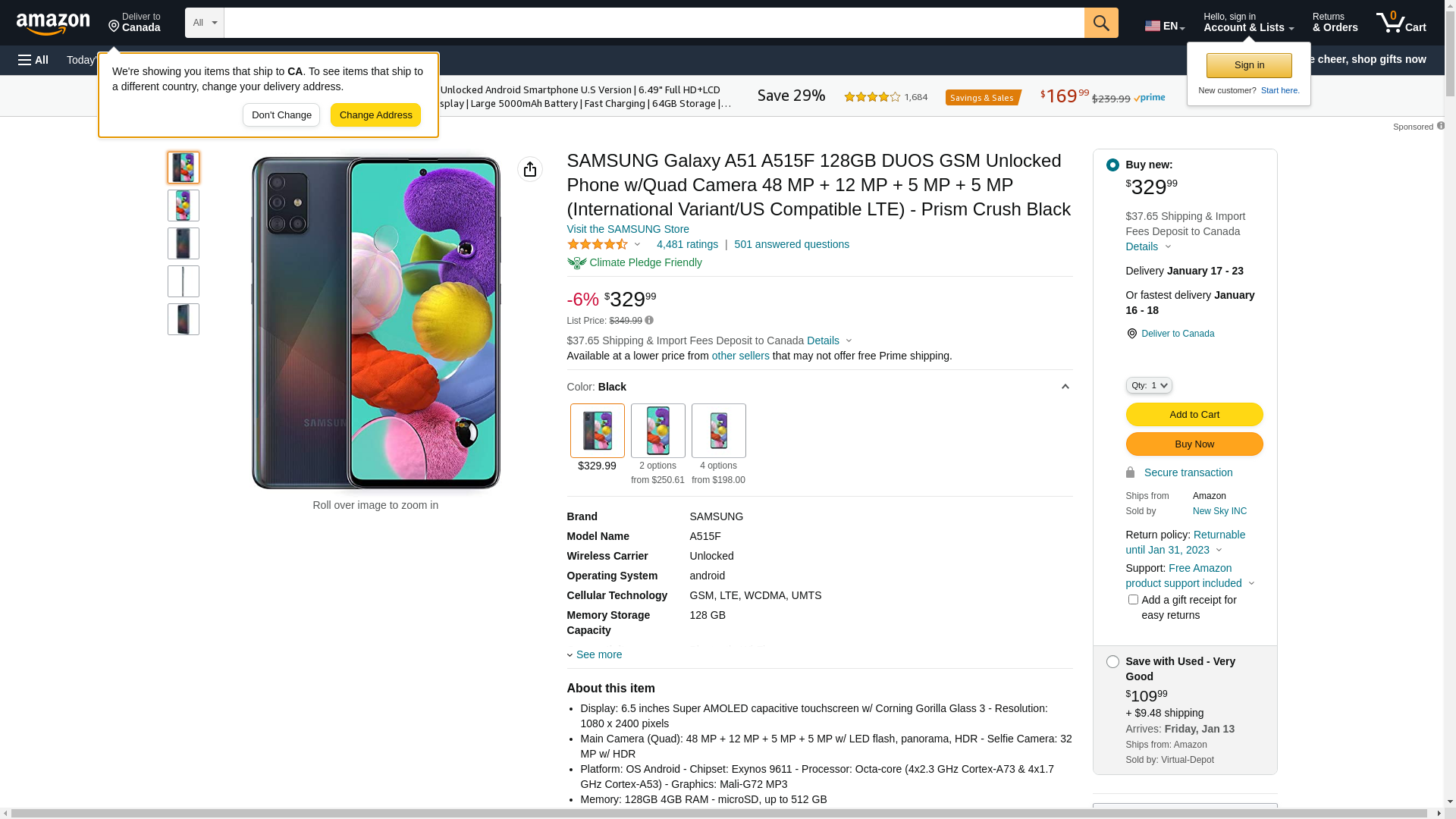 ![]() abt.com | GALAXYA51BK-INT | 1 | 1 | 1 @ $319.99 |