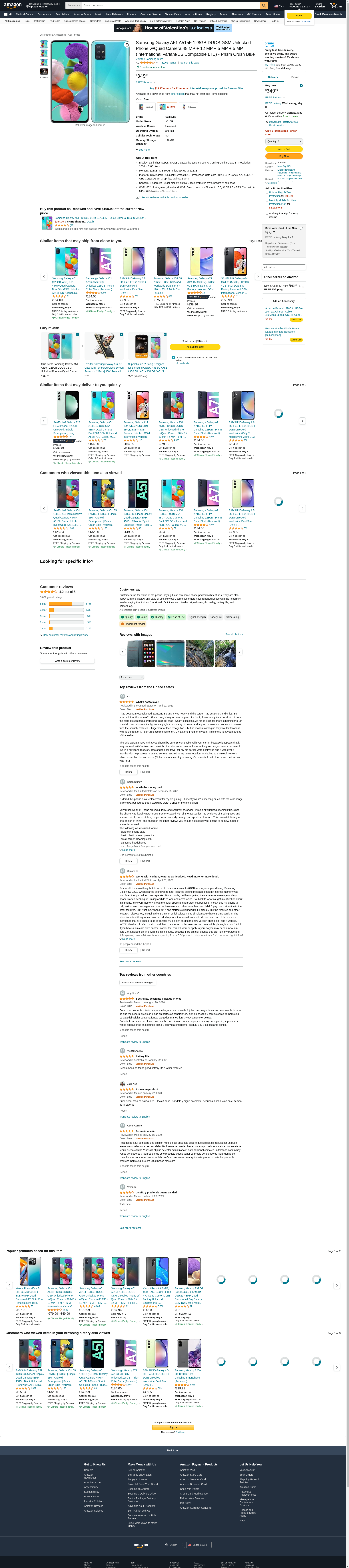 Samsung Galaxy A51 A515F 128GB DUOS GSM Unlocked Phone w/Quad Camera 48 MP + 12 MP + 5 MP + 5 MP (International Variant/US Compatible LTE) - Prism Crush Blue