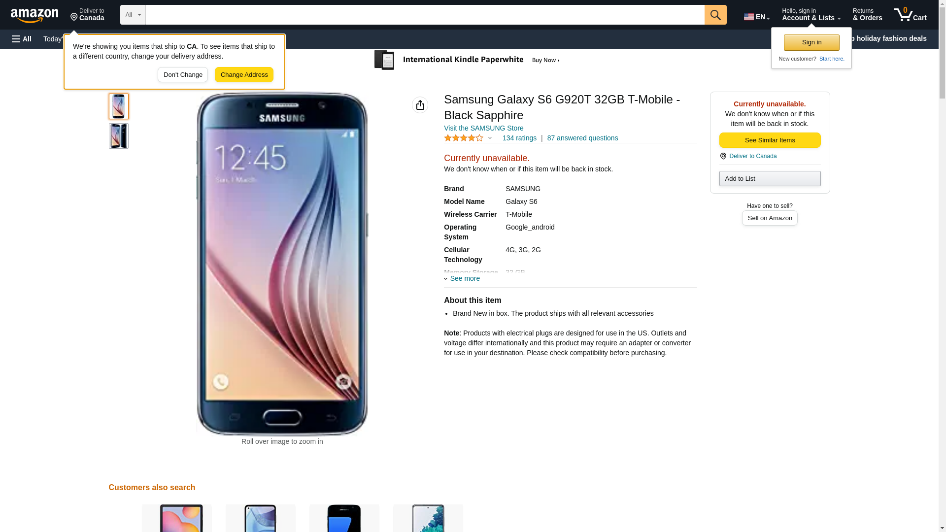 Samsung GALAXY S6 G920 32GB Unlocked GSM 4G LTE Octa-Core Smartphone - Black Sapphire