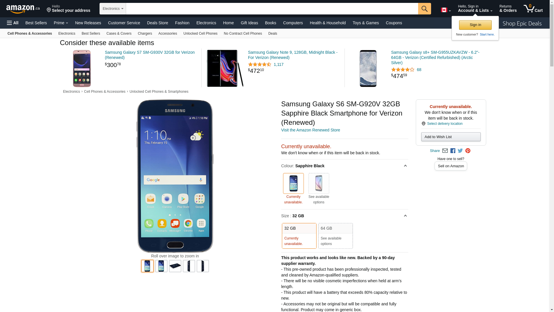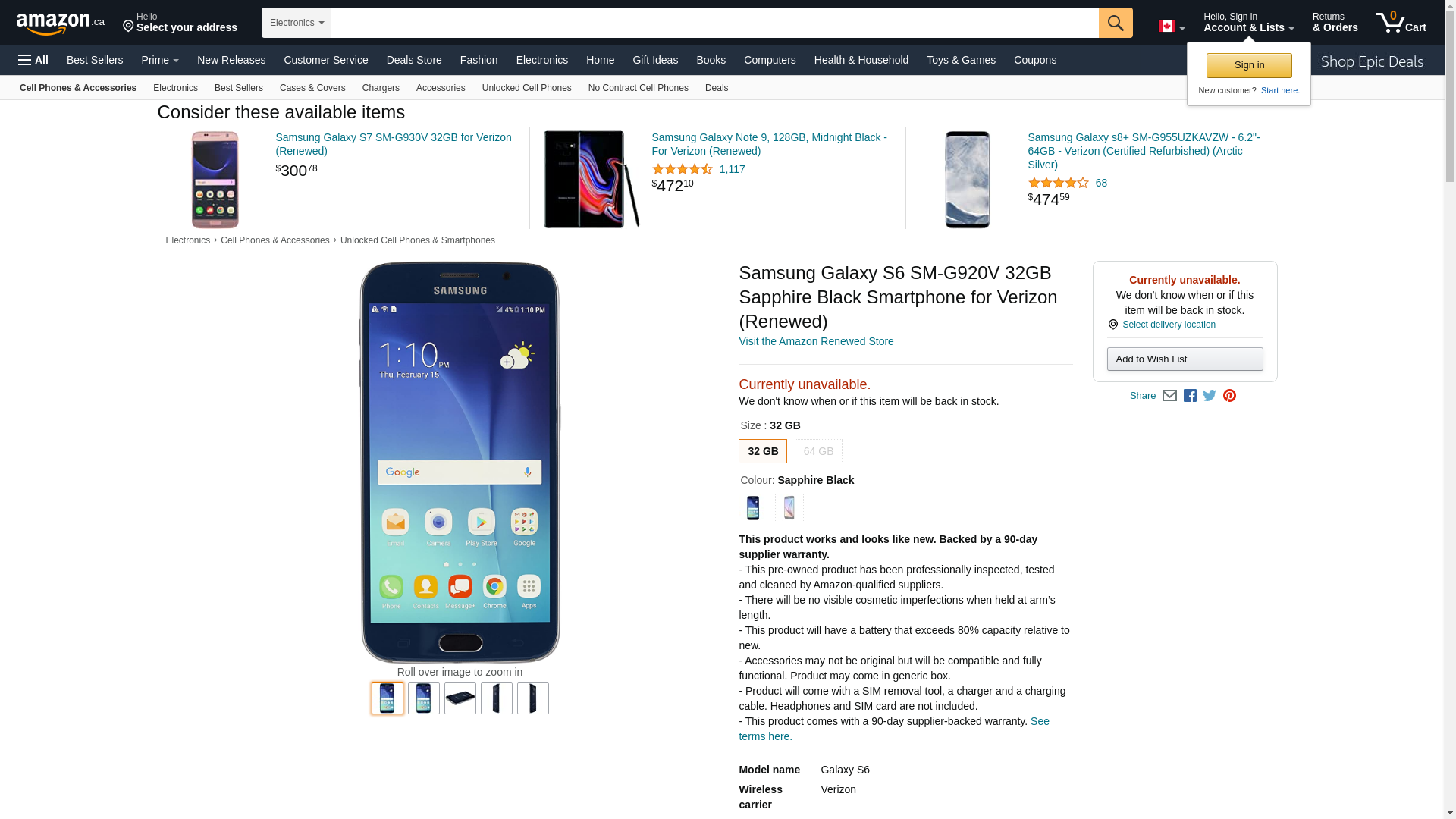 Samsung Galaxy S6 SM-G920V 32GB Sapphire Black Smartphone for Verizon (Renewed)
