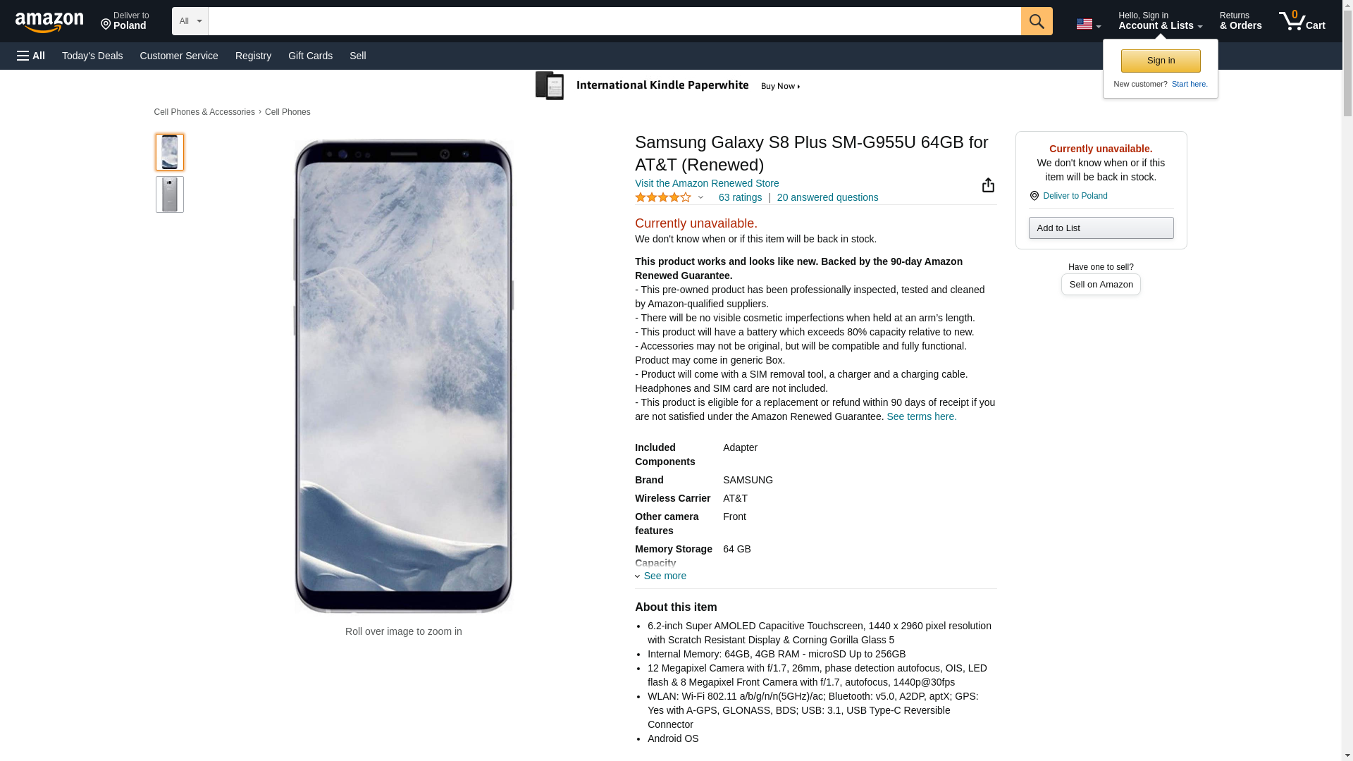 SAMSUNG Galaxy S8 Plus SM-G955U 64GB for AT&T (Renewed)