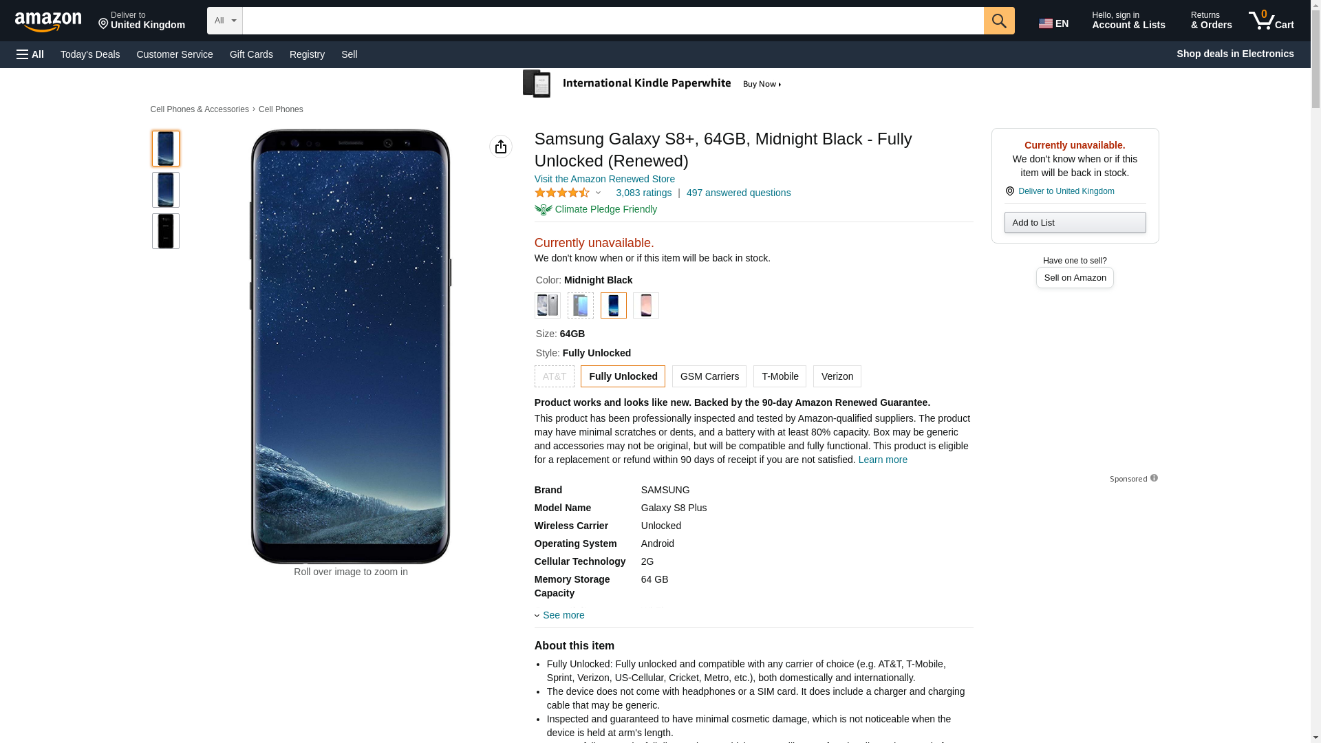 Samsung Galaxy S8 Plus Unlocked 64GB (Midnight Black) - (Renewed)