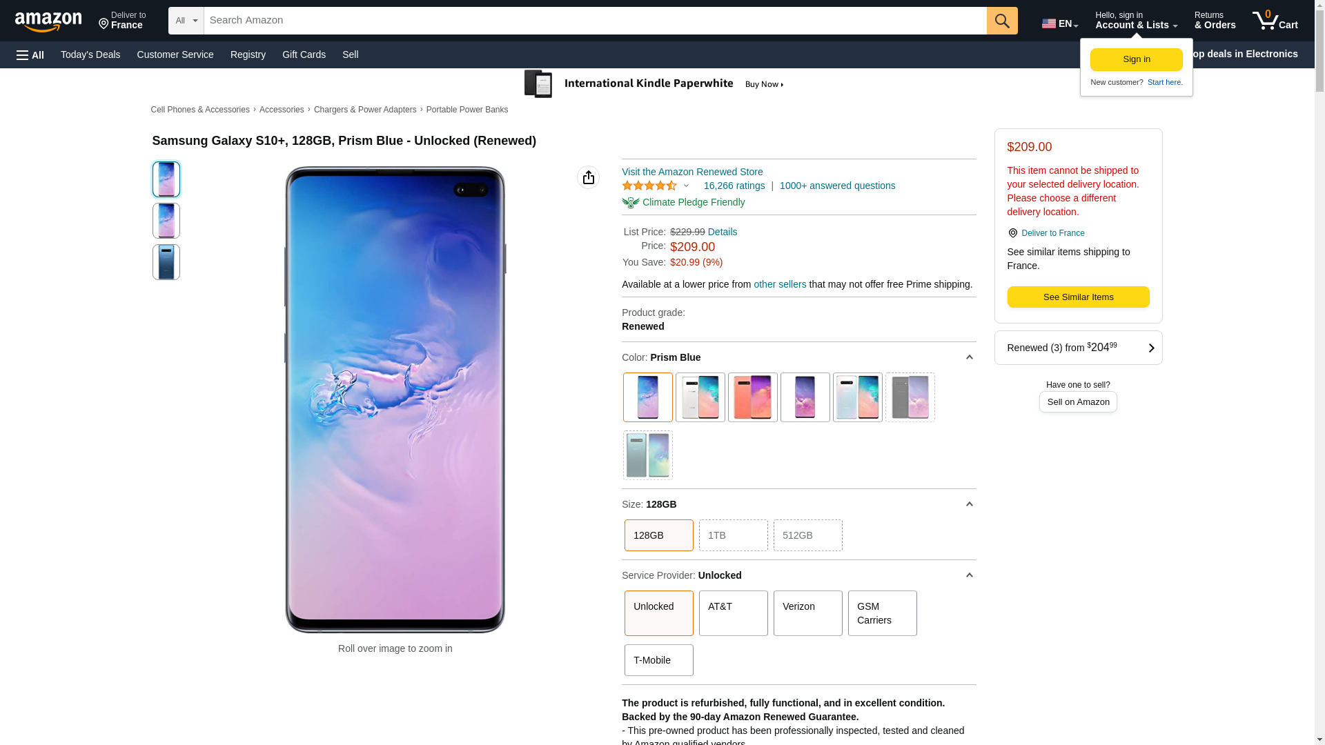 Samsung Galaxy S10+, 128GB, Prism Blue - Fully Unlocked (Renewed)