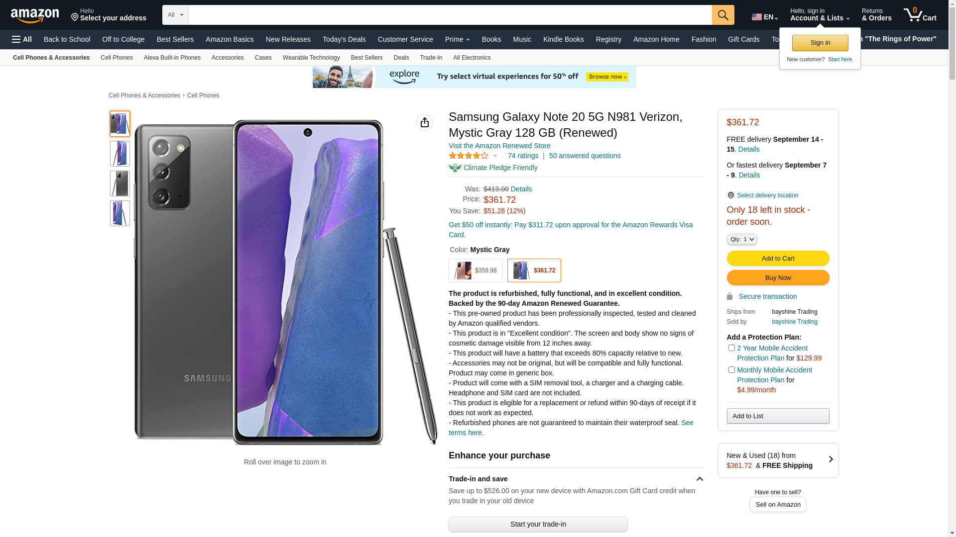 Samsung Galaxy Note 20 5G N981 Verizon, Mystic Gray 128 GB (Renewed)
