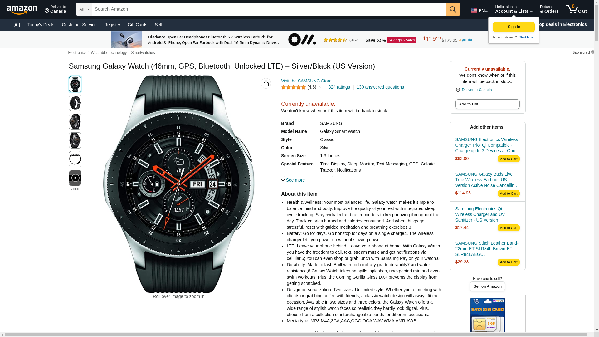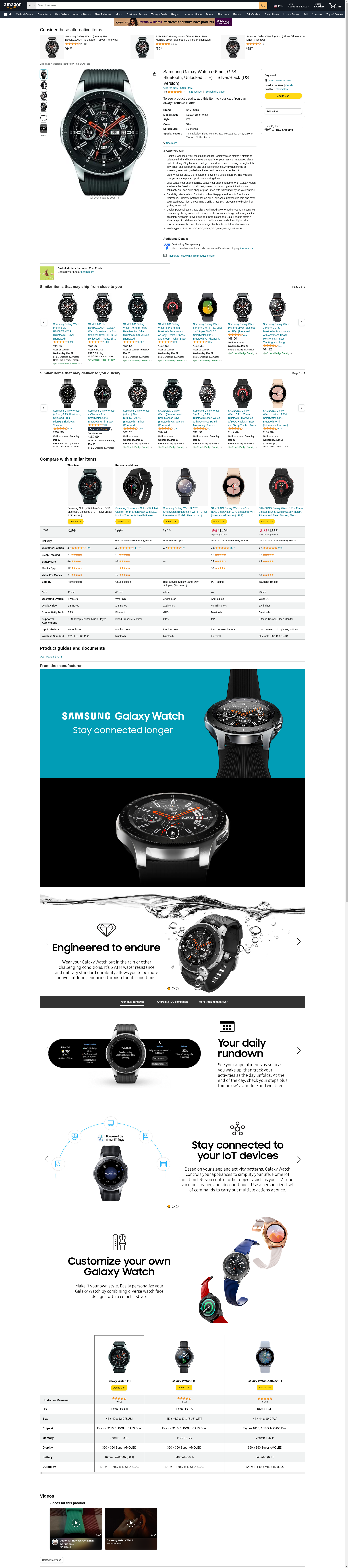 Samsung Galaxy Watch (46mm, GPS, Bluetooth, Unlocked LTE) – Silver/Black (US Version)