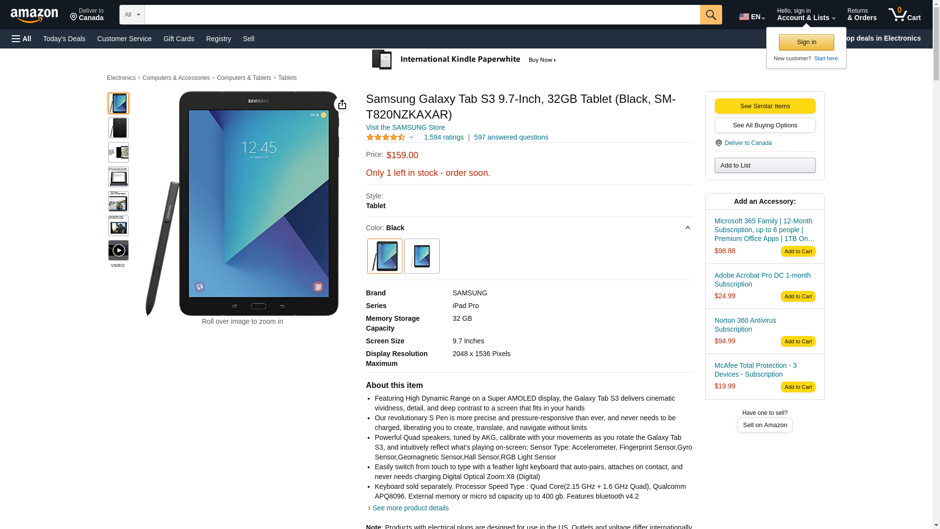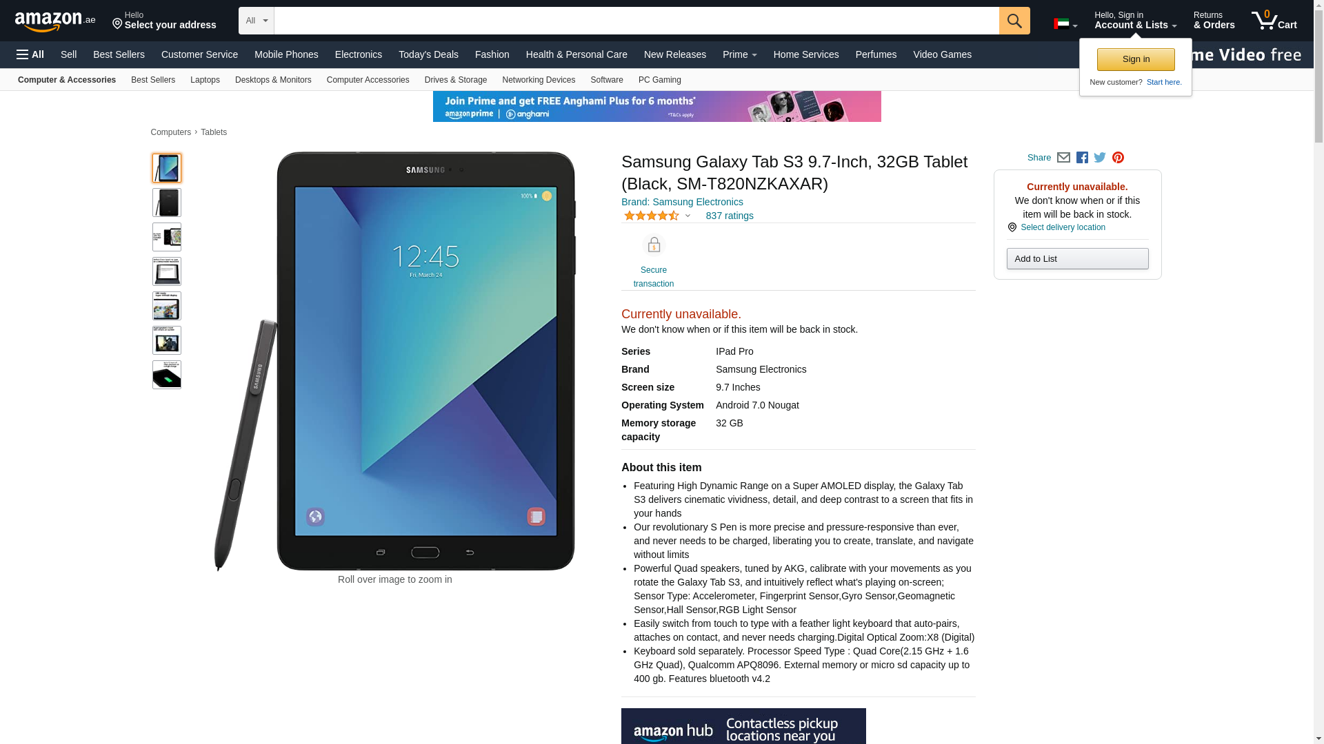 Samsung Galaxy Tab S3 9.7-Inch, 32GB Tablet (Black, SM-T820NZKAXAR)