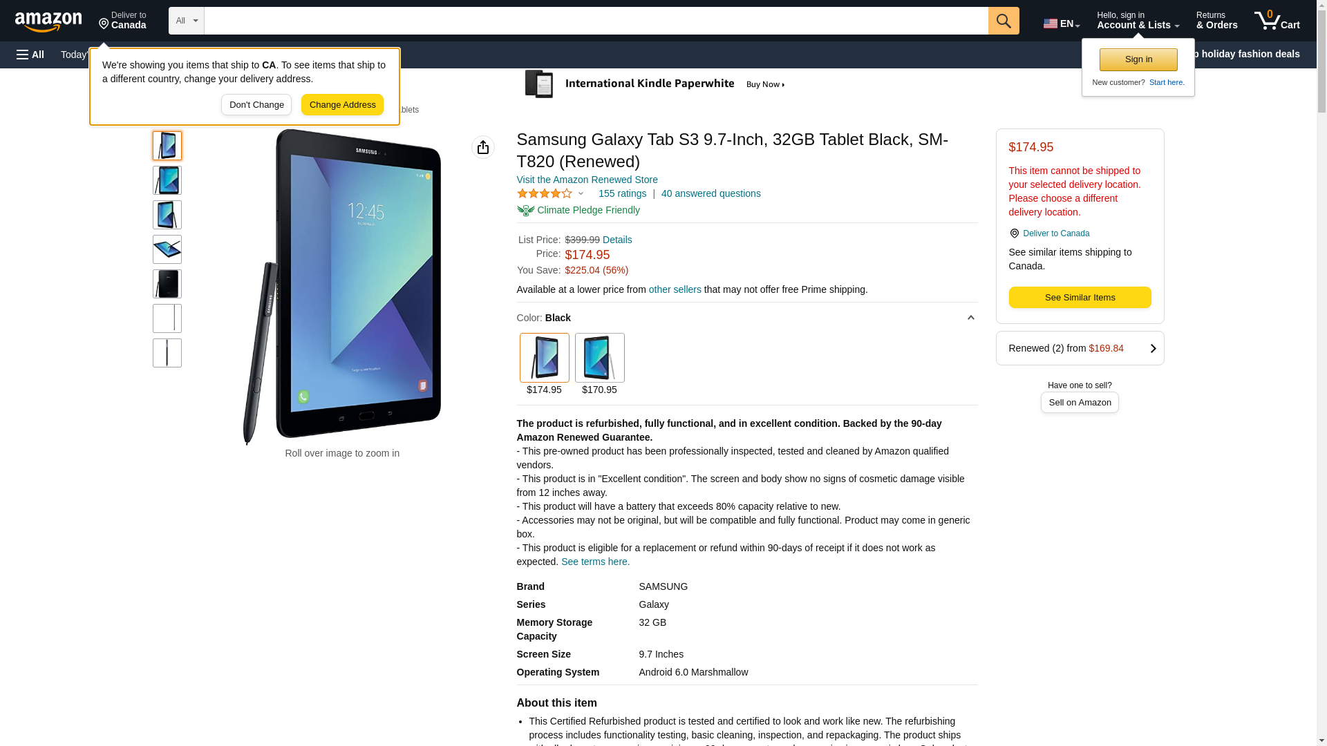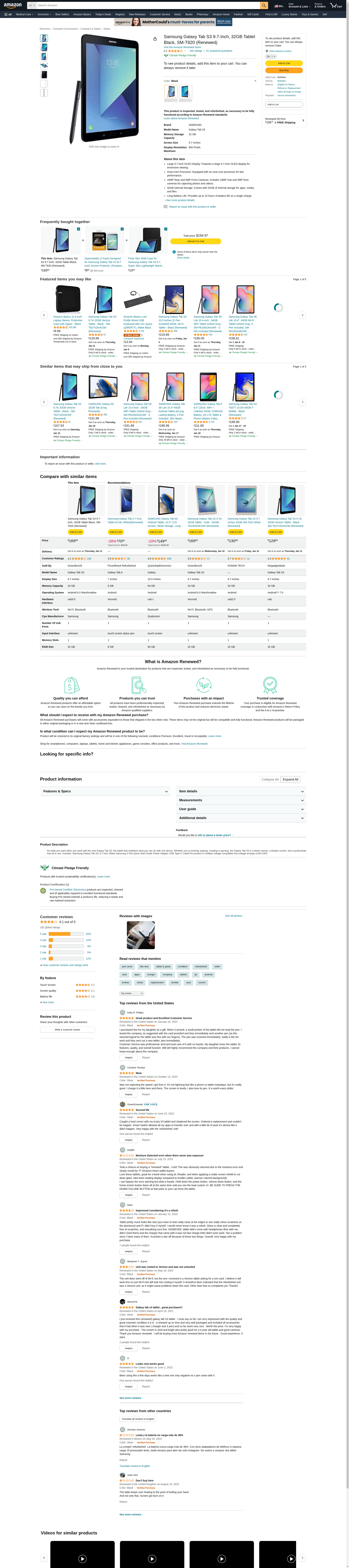Samsung Galaxy Tab S3 9.7-Inch, 32GB Tablet Black, SM-T820 (Renewed)