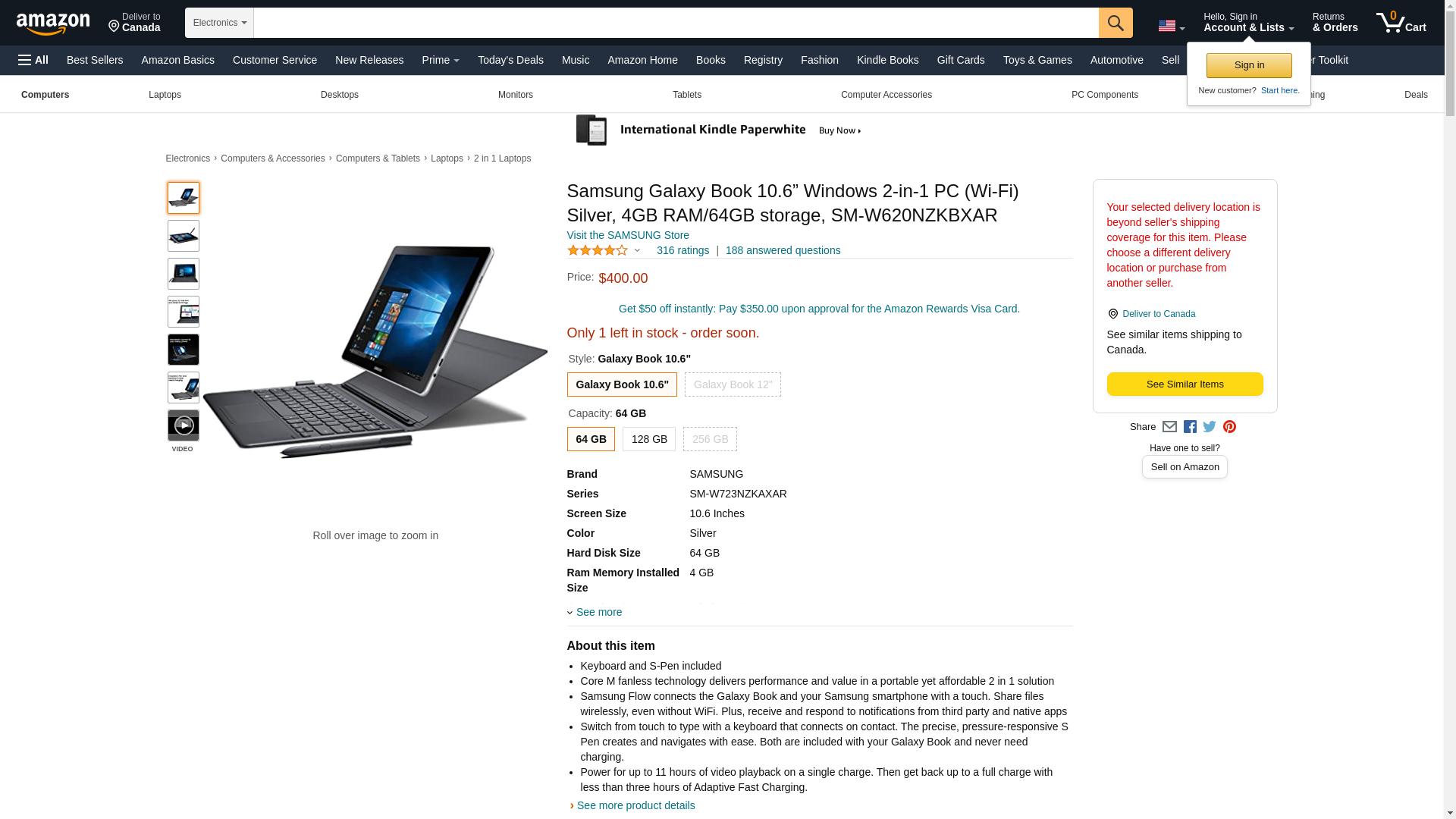 Samsung Galaxy Book 10.6” Windows 2-in-1 PC (Wi-Fi) Silver, 4GB RAM/64GB storage, SM-W620NZKBXAR