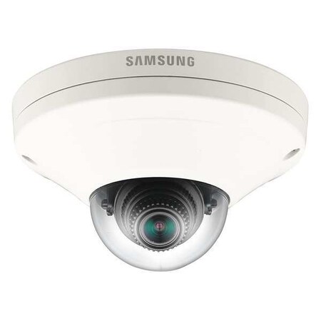 The ivory SNV-6013 2MP Vandal-Resistant Outdoor Micro Dome Camera (NTSC) from Samsung captures high-quality images at a maximum resolution of 1920 x 1080. The camera features 120 dB WDR (Wide Dynamic Range) and can record footage even under minimum illumination of 0.1 lux (color, F1.2, 50IRE) and 0.001 lux (B&W, F1.2, 50IRE). The camera comes with a 2.8mm fixed lens that offers a 112° horizontal viewing angle. This weather- (IP66 rated) and vandal-resistant (IK10 rated) camera is suitable for both outdoor/indoor installations.