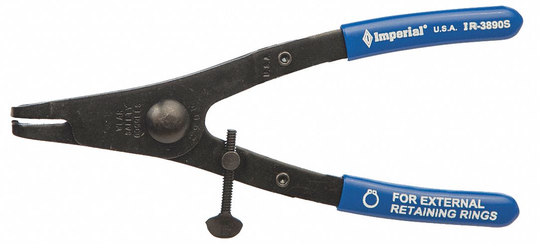 The MILBAR 290R Retaining Ring Pliers are the ideal tool for securing retaining rings in place. They can also be used to adjust hose clamps, hose couplings and pipe fittings. The locking pliers have a thumb screw stop which allows you to apply pressure without having to worry about the plier slipping. The carbon steel plier is 6 1/4 in. long and has an external design with a cushion grip handle. It comes with an internal fixed tip that works well on shafts of 1/8 in to 1 in. diameter. Its tip angle is 90 degrees, making it easy to insert into small spaces while keeping your hands clear of obstructions like sheet metal or rivets. If you want locking pliers that can secure retaining rings in place, then this MILBAR 290R Retaining Ring Pliers will do the job nicely.