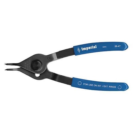 'Retaining Ring Plier, Convertible, Tip Type Fixed, Tip Dia. 0.047 In., Tip Angle 0 Degrees , For Shaft Dia. 5/16 In. to 1 In., For Bore Dia. 5/8 In. to 1-3/8 In., Overall Length 6 In., Spring Return No, Number of Pieces 1, Material Carbon Steel, Handle Color Blue, Handle Design Cushion Grip, Standards ASME B107.50-2010'