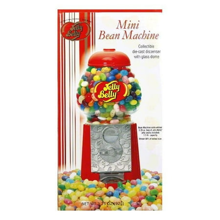 3.25 oz QTY 4 <br /> <br />Bean Machine sold unfilled. 3.25 oz bag of Jelly Belly jelly beans included. 1.5 lb capacity. Shown 80% of actual size. The original gourmet jelly bean. Collectible die-cast dispenser with glass dome. Dispenses Jelly Belly jelly beans and JBz chocolate candies. Works with most coins. Includes bag of Jelly Belly jelly beans. 9 inch tall; 1.5 lb capacity. Product Guarantee: Your Jelly Belly confection items are made of the finest food ingredients. They should reach you in excellent condition. Glass. Fragile - handle with care. Dispenser made in China. Jelly Belly jelly beans made in the USA. Candy made in the USA.
