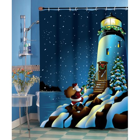 BANJ1160 <br /> <b>Features</b> <br /> <ul> <li>Unique styling</li> <li>Material: 100% Polyester</li> <li>Machine wash</li> <li>Pattern: Graphic Print & Text</li> <li>Product Type: Shower curtain</li> <li>Color: Blue/Black</li> <li>Material: Polyester</li> <li>Theme: Holiday</li> <li>Holiday Theme: Yes</li> <li>Holiday: Christmas</li> </ul> <br /> <b>Dimensions</b> <br /> <ul> <li>Depth: 1"</li> <li>Overall Height - Top to Bottom: 70"</li> <li>Overall Width - Side to Side: 72"</li> <li>Overall Product Weight: 1 lbs</li> </ul>
