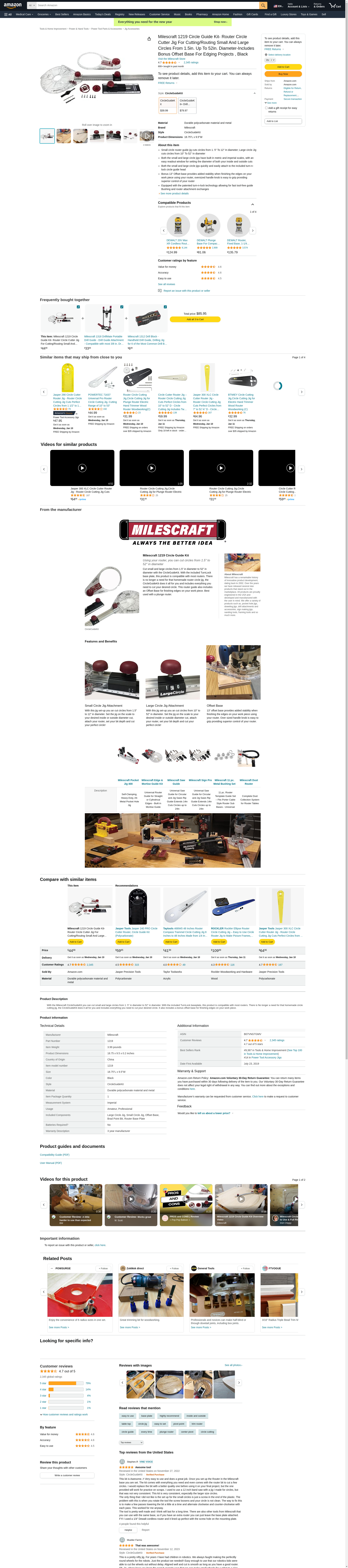 Milescraft 1219 Circle Guide Kit- Router Circle Cutter Jig For Cutting/Routing Small And Large Circles From 1.5in. Up To 52in. Diameter-Includes Bonus Offset Base For Edging Projects , Black