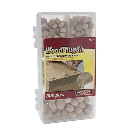 Milescraft 5347 Wood Plug Kit 300 pcs. - Variety Pack - Assorted 3/8" and 1/2" Wood Plugs and Buttons for Covering Screw Holes- Ideal for Woodworking Projects