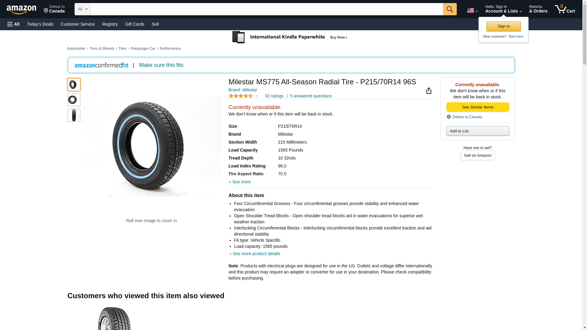 Brand: Milestar<br>Style: MS775 Tour<br>Size: 215/70R14<br>Load Index: 96<br>Speed Index: S<br>Load Range: SL<br>Ply Rating: 4<br>UTQG: <br>Sidewall: White Wall