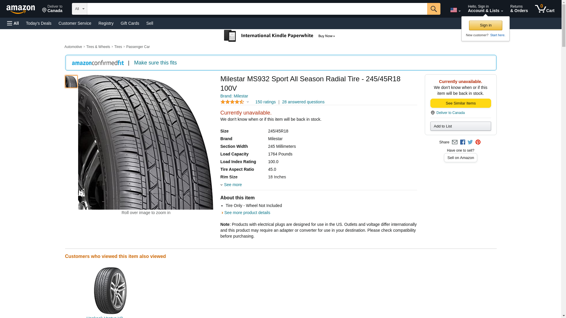 Milestar MS932 Sport All Season Radial Tire - 245/45R18 100V