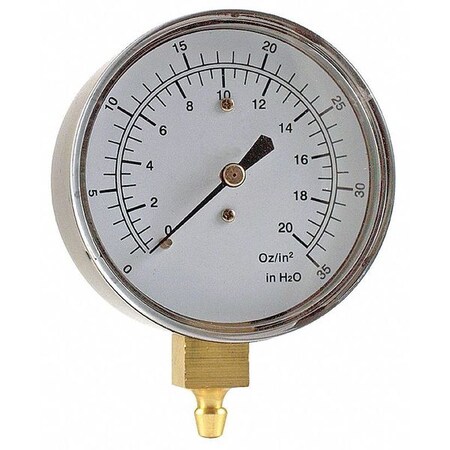 Pressure Gauge, 0 to 10 In. H2O, 1/4" Hose Barb, Steel, Black