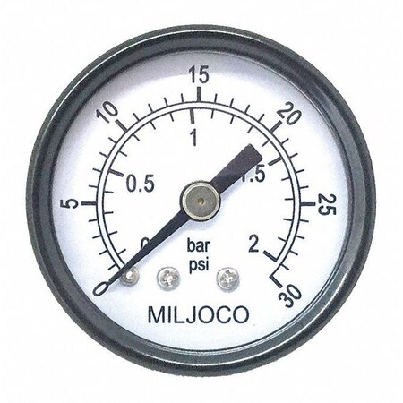 Miljoco P150805 1.5" Utility Pressure Gauge, 1/8" NPT Center Back Mount, 0-100 psi