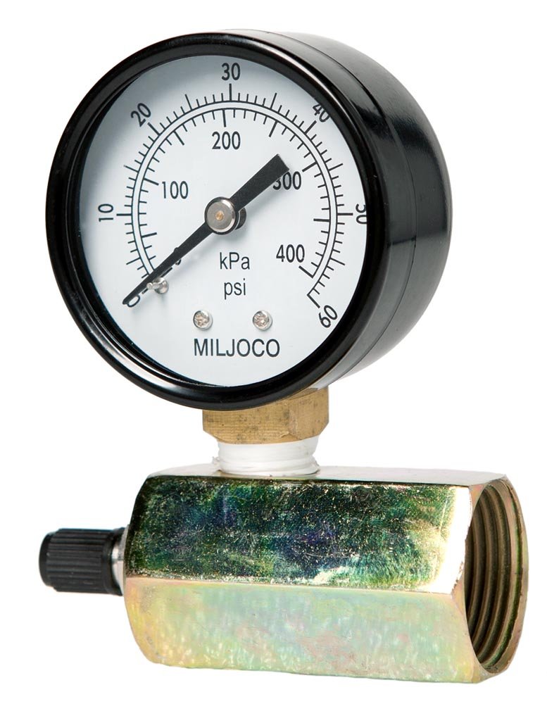 Miljoco P2008L02ATG Air Test Pressure Gauge, Brass Wetted Parts, 2" Dial, 0-15 psi Range, +/-3-2-3% Accuracy, 3/4" NPT Bottom Connection