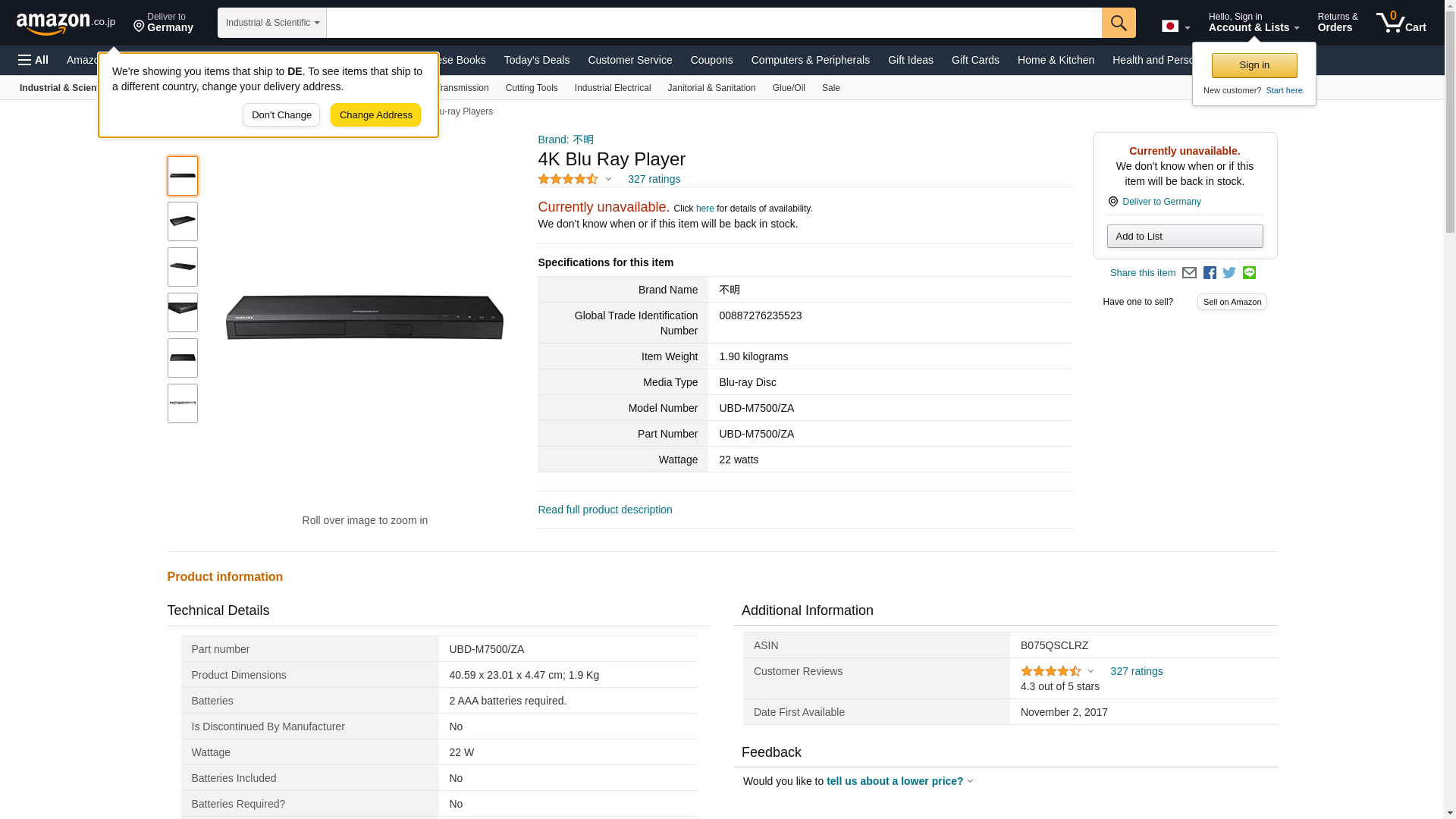 | Part number | UBD-M7500/ZA |