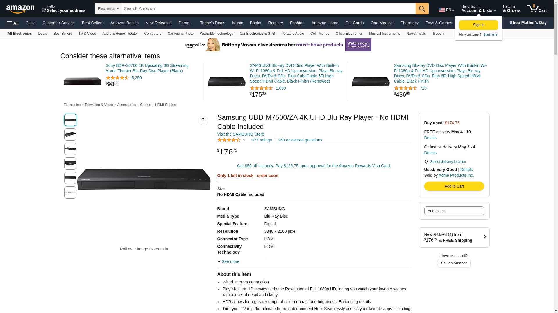 Samsung UBD-M7500/ZA 4K UHD Blu-Ray Player - No HDMI Cable Included