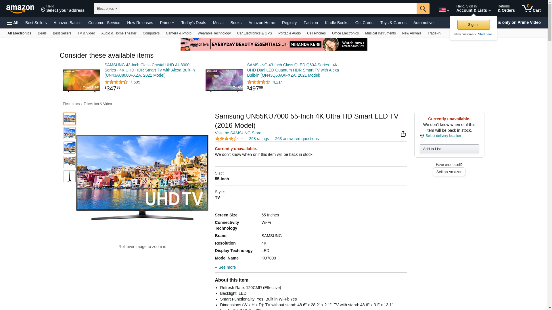 | UN40KU7000 | 1 | 1 | 1 @ $1299.97 | ||