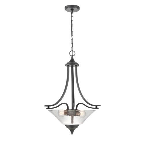Pendants are the perfect opportunity to blend a utilitarian task light with your own unique design style. Select a pendant light that will reflect not only a beautiful glow, but also your refinement and taste. Light bulbs are not included.<br/><br/>Features :<br/><br/>- Place this fixture over your kitchen island, dining room table or even in your hallway.<br/>- Compatible with standard wall dimmer<br/>- 1 year limited manufacture's warranty<br/>- This item is UL listed<br/>- Meets CSA standards<br/>- This item is rated for dry location.<br/>- Professional installation recommended..<br/><br/>Specifications :<br/><br/>- Assembly Required : Yes<br/>- Hardware : Included<br/>- Number of Lights : 3<br/>- Warranty : 1 year Limited Manufacturer Warranty<br/>- Product Color : Matte Black.