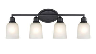 Millennium Lighting Amberle Brushed Nickel in Matte Black 4 Light Bathroom Vanity Fixture with Frost White Shades Matte Black Black Polished