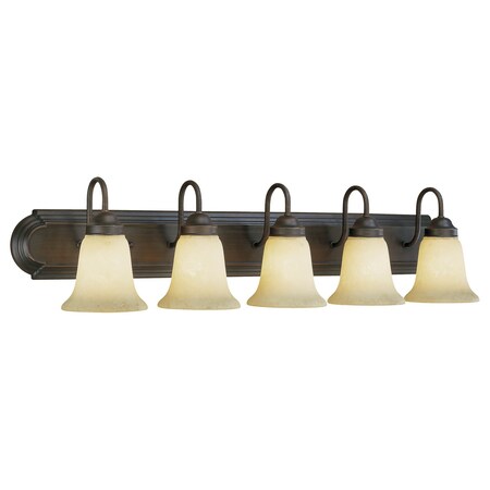 We all harbor a little vanity, and just the right selection of vanity light is certain to satisfy. It's an opportunity to make a bold design statement while bathing you in the perfect light. Light bulbs are not included.<br/><br/>Features :<br/><br/>- Material: Metal<br/>- Rubbed bronze finish<br/>- Place this fixture directly above the mirror and sink to add the perfect lighting to your bathroom.<br/>- This item is UL listed<br/>- Meets CSA standards<br/>- Professional installation recommended.<br/>- This item is rated for damp location.<br/>- Compatible with standard wall dimmer.<br/><br/>Specifications :<br/><br/>- Product Dimensions : 8.5"H x 36"W x 36"D<br/>- Product Weight : 9.35 lbs<br/>- Number of Lights : 5<br/>- Product Dimensions : (Extension) 7"<br/>- Warranty : 1 year limited manufacture.
