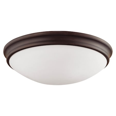Millennium Lighting Rubbed Bronze Three-Light Flush Mount with Etched White GlassFinish:Rubbed BronzeBulb/Watt:3 - 60 watt Medium Base bulbsDimensions:14""W x 5.5""H