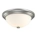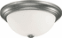Flushmount Ceiling Light This lighting product is available in Rubbed Silver finish. This Flushmount is brilliantly designed with Etched White shade or glass finish. This fixture works up to 2, 60 watt lamps, NOT INCLUDED. These lamps can supplied with more energy efficent options like LED and compact fluorescents, Please See Our Lamp Section.