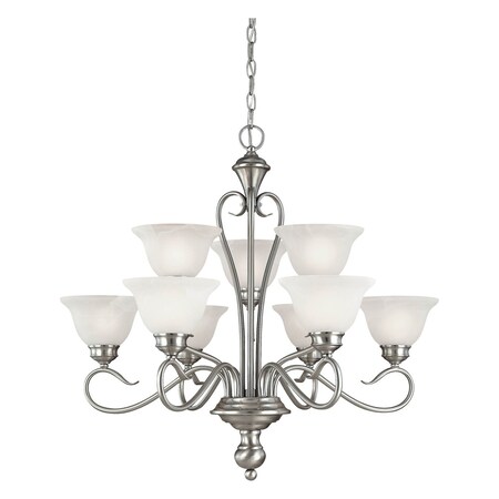 Millennium Lighting 6179-SN Devonshire - Nine Light 2-Tier Chandelier, Satin Nickel Finish with Faux Alabaster Glass