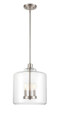 Millennium 6933-SN Transitional Three Light Pendant from Asheville Collection in Pewter, Silver Finish, Satin Nickel